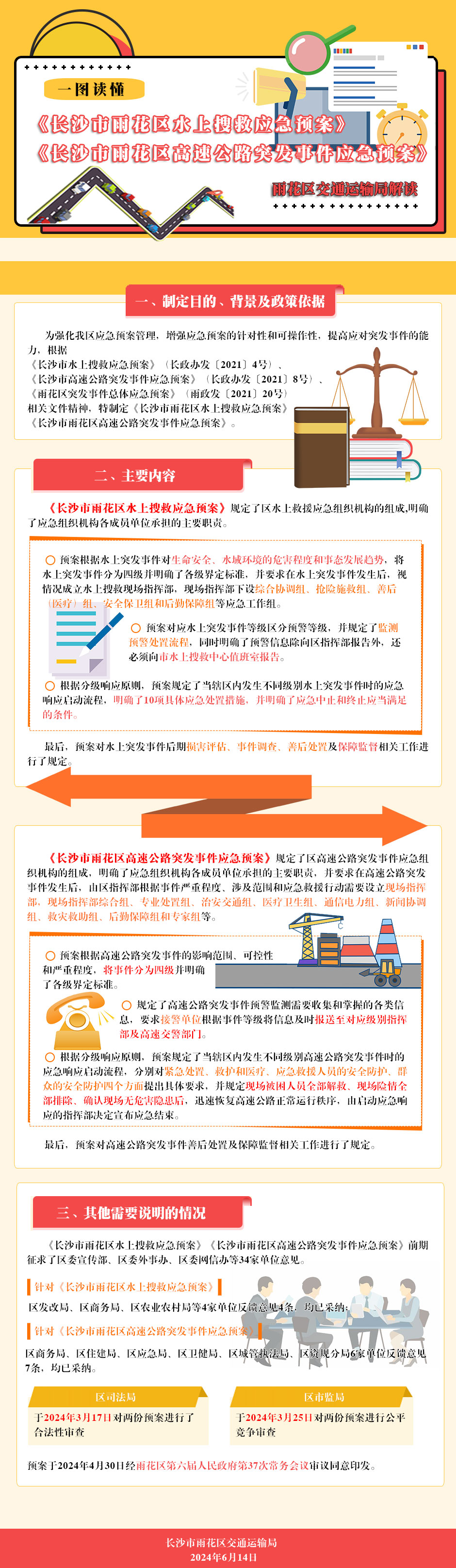 • 雨花区交通运输局党组成员、副局长陈锐解读《长沙市雨花区水上搜救应急预案》《长沙市雨花区高速公路突发事件应急预案》