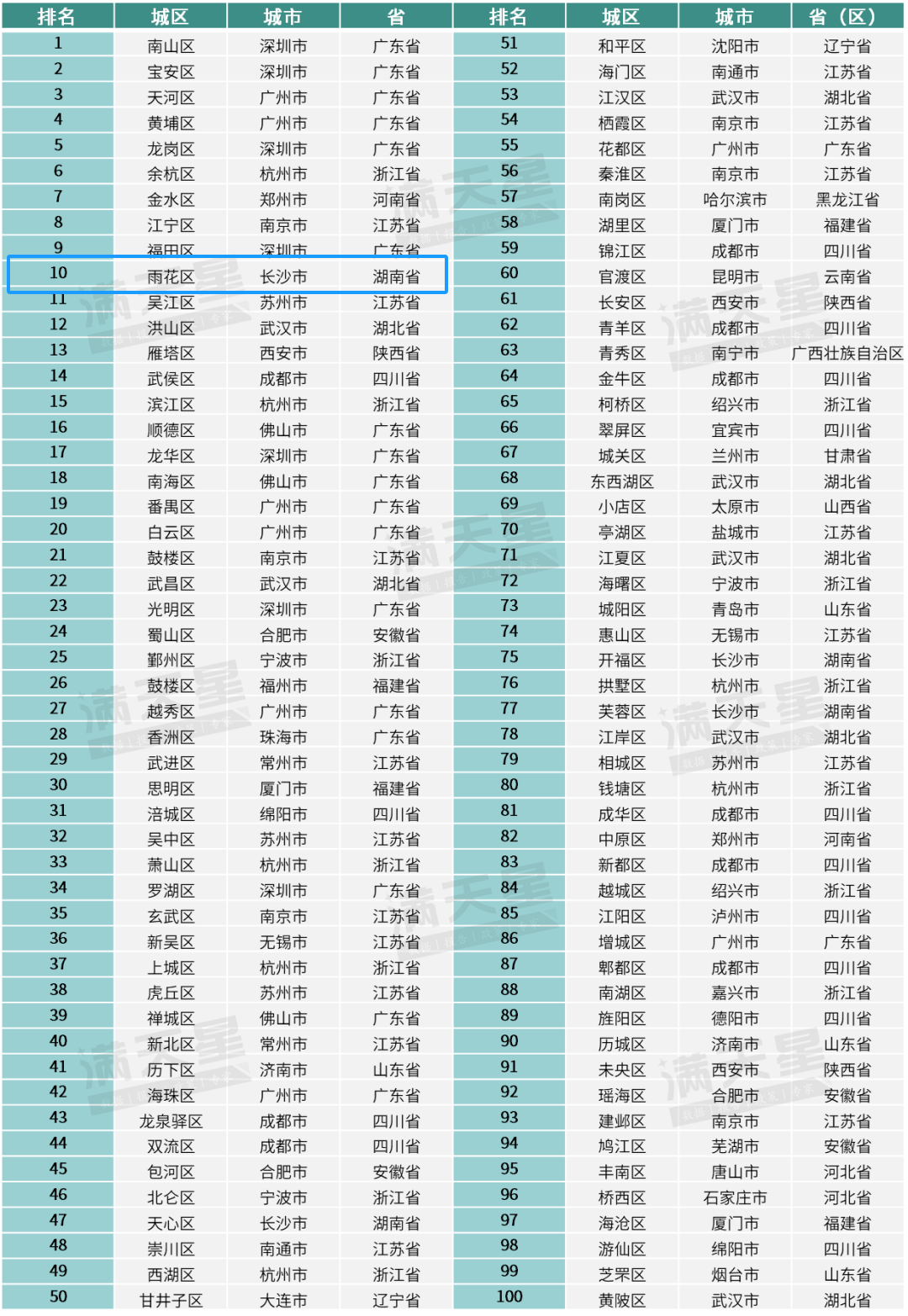 今天,赛迪顾问城市经济研究中心发布赛迪创新百强区(2025)。湖南4个区进入百强,均在长沙。其中,雨花区蝉联前十,排在第10位。天心区、开福区、芙蓉区分别排在第47、75、77位。