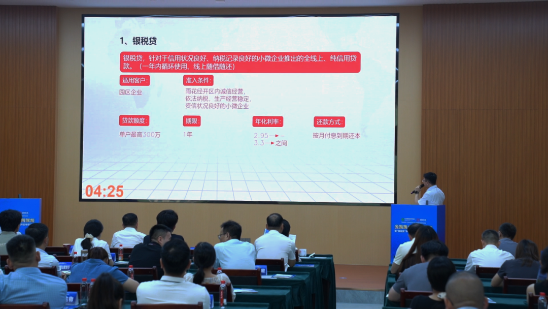 目前,园区已通过“雨经开园企通”小程序和走访摸排等途径,收集到50余家企业的融资需求。活动现场,为更好地加强政银企沟通,跟进服务贷款授信进展,园区组建“金融惠企•信用赋能”融资工作群,后续将在群内定期梳理贷款授信情况,推动融资服务持续开展。一直以来,园区都十分重视用金融“活水”滴灌产业之花,创新推出了“小步快跑”“揭榜挂帅”金融服务模式,2024年举办了10场银企对接活动,放款182亿元,有效缓解了企业融资难题。