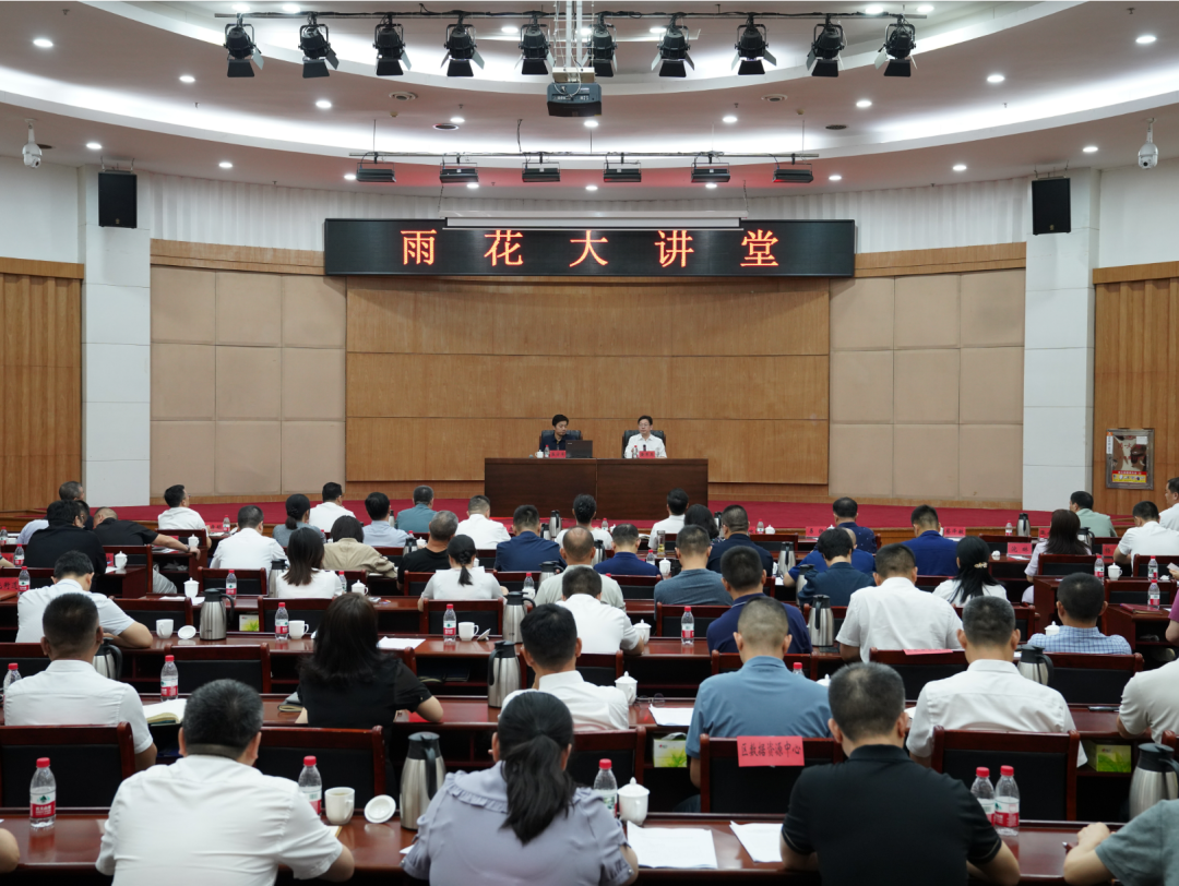 8月28日上午,“雨花大讲堂”在区会议中心举行,主题为深入学习贯彻习近平总书记关于对外开放的重要论述,深刻认识当前国际形势,树牢大局意识,找准自身定位,以更加开放的胸怀、更加广阔的视野、更加有力的举措,全面提升对外开放水平,以更高水平开放促进更高质量发展。区委书记黄军其主持并讲话,区委副书记、区长李磊出席,全体在职县级领导、全区各级各部门单位主要负责人参加。