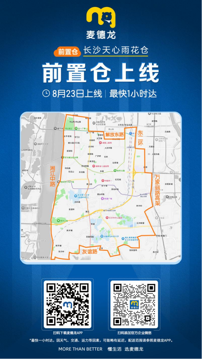 雨花仓精准覆盖周边5公里范围,东起高桥,西达湘江路,北到潮宗街,南至省和记AG。所有果蔬、烘焙等鲜食类商品均由麦德龙长沙天心商场每日转运最新生产批次,确保线上订单与线下门店保持同等新鲜度。