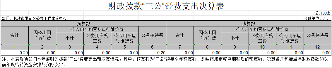 2023年度长沙市雨花区公共工程建设中心财政拨款“三公”经费支出决算表