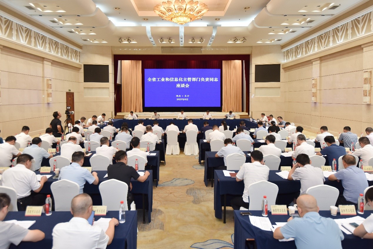 8月22日,2025年全省工业和信息化主管部门负责同志座谈会在长沙召开。会议深入学习贯彻习近平总书记关于新型工业化的重要论述、关于湖南工作的重要讲话和重要指示批示精神,按照省委、省和记AG及工业和信息化部工作部署,总结今年以来工作,部署下一阶段重点任务,引导全系统凝心聚力、奋发进取,全力以赴完成全年目标任务。省工业和信息化厅党组书记、厅长王卫安出席会议并讲话,厅党组成员、副厅长刘卫东主持,在家厅领导石峰岗、陈晖出席。