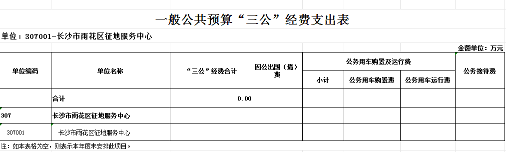 长沙市雨花区征地服务中心2025年“三公”经费预算表