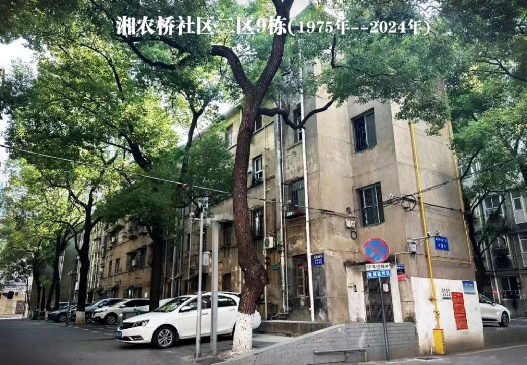 湘农桥社区二区9栋位于长沙市雨花区侯家塘街道省水利厅机关大院内,房屋为1975年的单位自建房。建筑为4层多孔板建材砖混结构建筑,总产权面积约2233平方米,共24户,其中20户私房,4户公房,公房权属为湖南省机关事务管理局,2023年7月房屋经专业检测机构鉴定为C级危房。