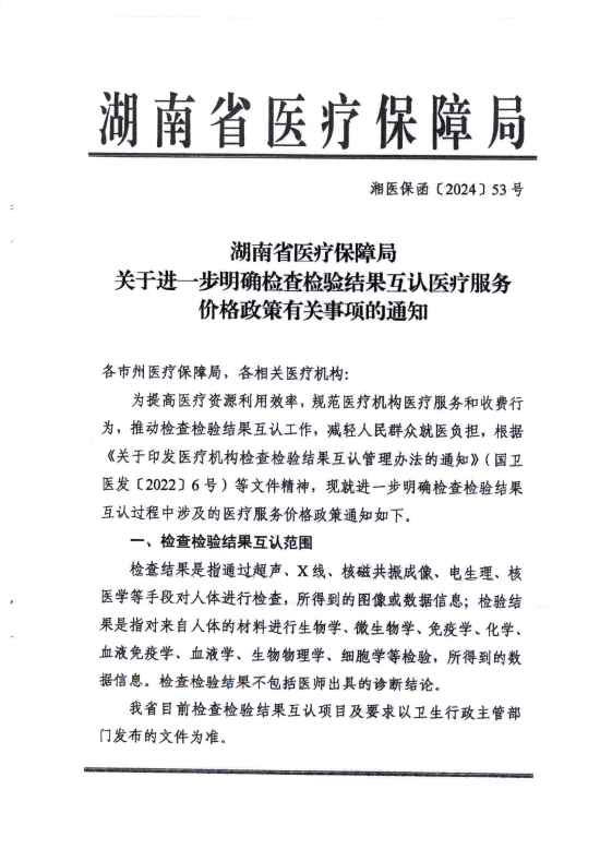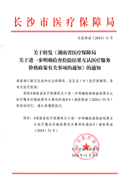 长医保函【2024】11号 关于进一步检查检验结果互认医疗服务价格政策有关事项的通知.pdf