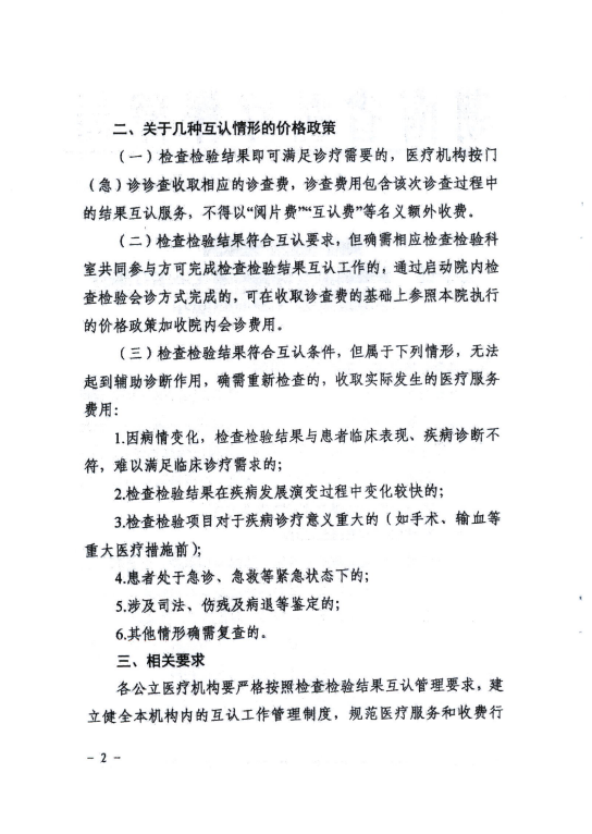关于进一步明确检查检验结果互认医疗服务价格政策有关事项的通知