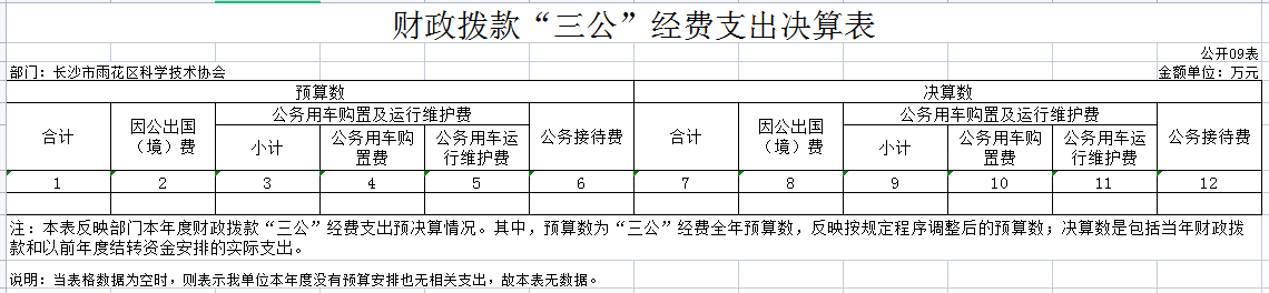 2023年度长沙市雨花区科学技术协会部门决算“三公”经费公开表(1).xlsx