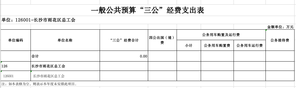 2025年度长沙市雨花区总工会一般公共预算“三公”经费支出表